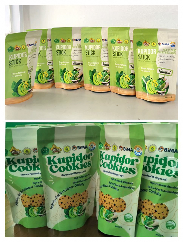 Selama ini kulit pisang sering dianggap tidak bernilai dan hanya berakhir sebagai limbah. Namun, melalui inovasi KUPIDOR, kulit pisang justru diolah menjadi bahan pangan bergizi tinggi ketika dipadukan dengan daun kelor yang kaya nutrisi. Hasil olahan ini dikembangkan menjadi dua produk unggulan: Stik KUPIDOR yang gurih dan renyah, serta Cookies KUPIDOR dengan cita rasa manis sehat yang disukai semua kalangan.