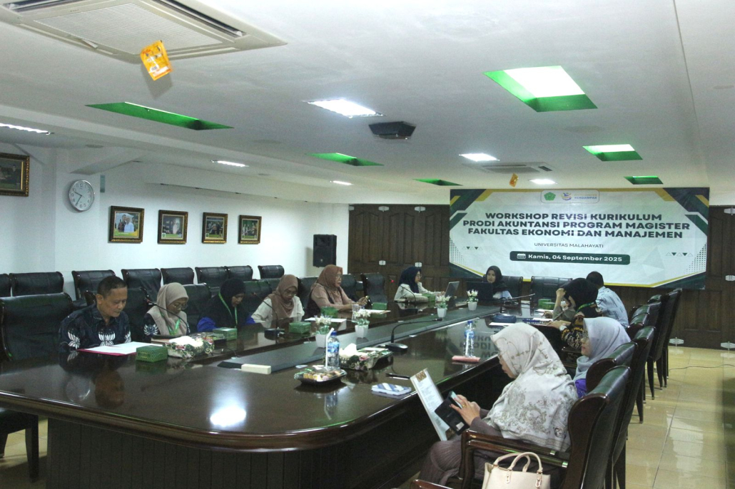 BANDAR LAMPUNG (malahayati.ac.id): Program Studi Magister Akuntansi Fakultas Ekonomi dan Manajemen Universitas Malahayati menggelar Workshop Revisi Kurikulum di Ruang Rapat Gedung Rektorat Universitas Malahayati, Kamis (4/9/2025). Kegiatan ini menjadi langkah strategis dalam memperkuat mutu pendidikan dan menyesuaikan kurikulum dengan dinamika perkembangan ilmu pengetahuan, teknologi, serta kebutuhan dunia kerja dan profesi akuntansi.