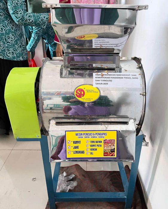 Selain itu, masyarakat juga diberikan pelatihan inovatif berupa pengolahan jahe merah menjadi dried ginger menggunakan teknologi sederhana. Proses ini melibatkan mesin pencuci dan pengupas jahe, mesin pengiris, serta Food Dehydrator Machine. Dengan cara ini, jahe merah dapat diolah menjadi bentuk kering yang praktis, tahan lama, dan bisa dikonsumsi kapan saja saat dibutuhkan.