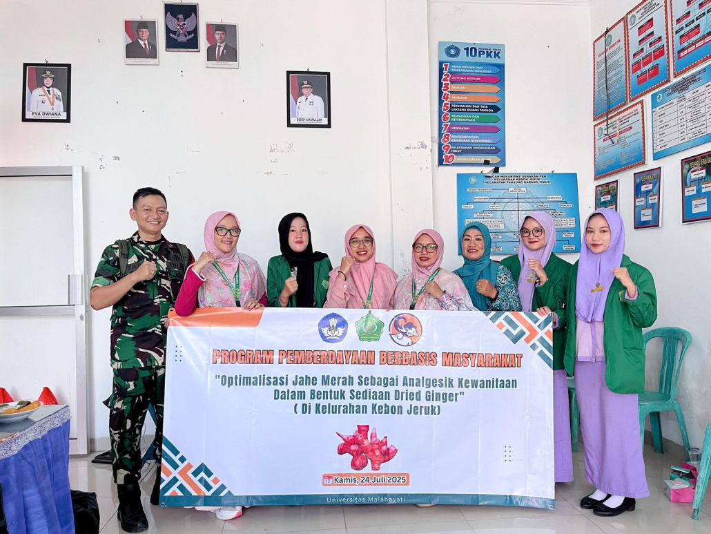 Lurah Kebon Jeruk dalam sambutannya menyampaikan apresiasi atas inisiatif Universitas Malahayati yang menghadirkan solusi praktis dan edukatif bagi masyarakat. “Selama ini, belum pernah ada sosialisasi tentang pemanfaatan jahe merah secara tepat. Kami berharap kegiatan ini dapat terus berkelanjutan dan memberi dampak nyata bagi kesehatan perempuan di wilayah kami,” ujarnya.