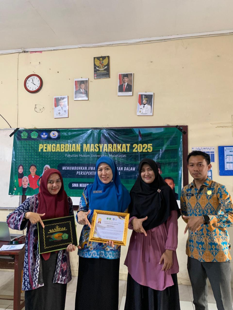“Pengabdian masyarakat ini bukan sekadar rutinitas akademik, tetapi wujud nyata kontribusi kami kepada masyarakat. Kami ingin menanamkan kesadaran hukum sejak dini kepada generasi muda,” ujarnya.