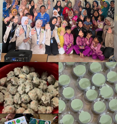 TANGGAMUS (malahayati.ac.id): Mahasiswa Universitas Malahayati Kelompok 32 KKL-PPM melaksanakan program inovasi pangan sehat di Pekon Dadisari, Kecamatan Wonosobo, Kabupaten Tanggamus, dengan membuat makanan tambahan berupa puding dan bakso berbahan dasar daun kelor. Program ini ditujukan sebagai langkah pencegahan stuntin g sekaligus pemberdayaan masyarakat melalui pemanfaatan pangan lokal. Rabu (20/8/2025).