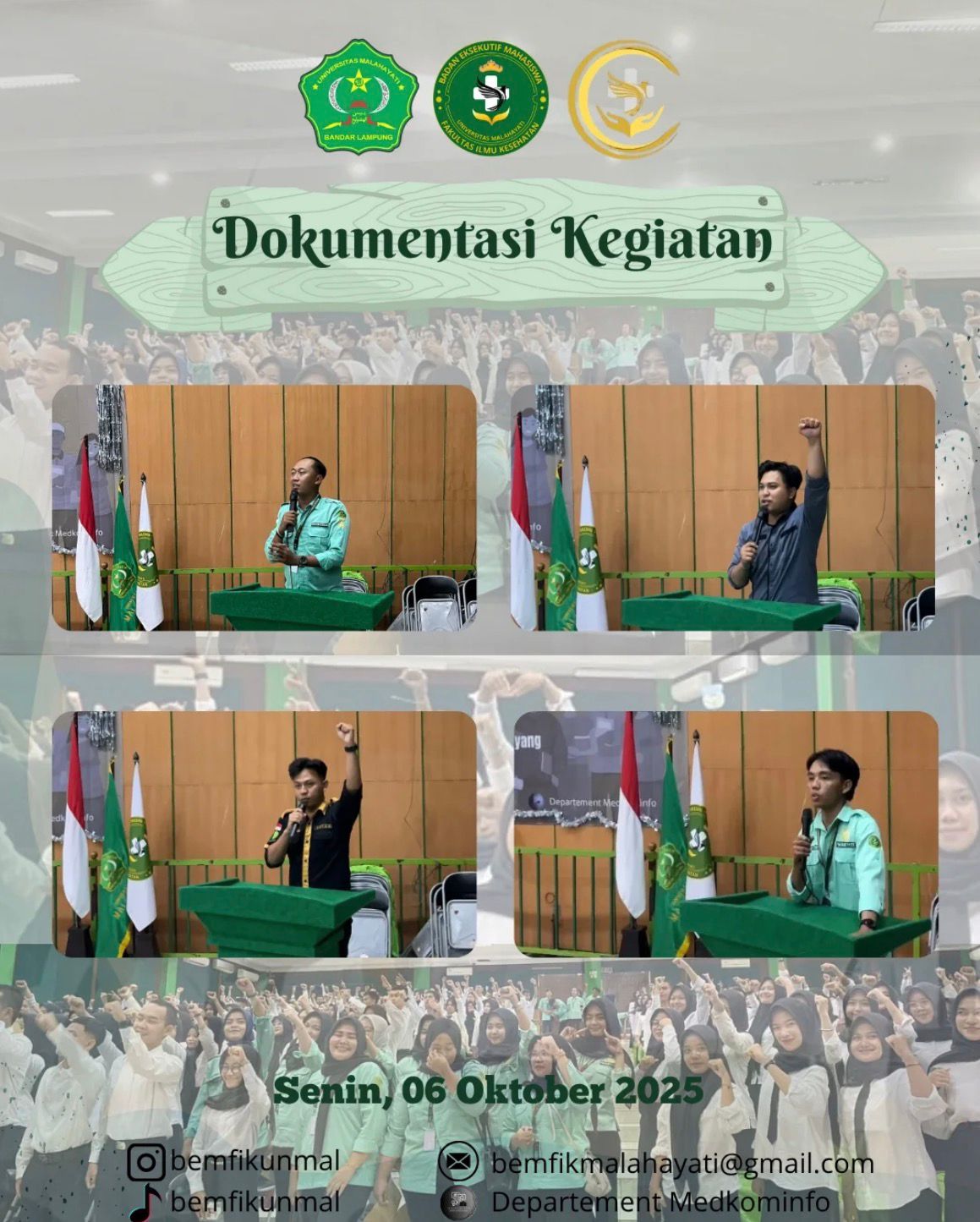 “Saya melihat kegiatan ini sejalan dengan semangat Universitas Malahayati dalam mencetak generasi intelektual yang tidak hanya unggul secara akademik, tetapi juga memiliki jiwa sosial, integritas, dan semangat kolaborasi yang tinggi. Saya berharap melalui kegiatan ini akan lahir kader-kader FIK yang solid, berdaya saing, dan siap menjadi motor penggerak perubahan positif bagi fakultas, universitas, dan masyarakat luas,” tutupnya.
