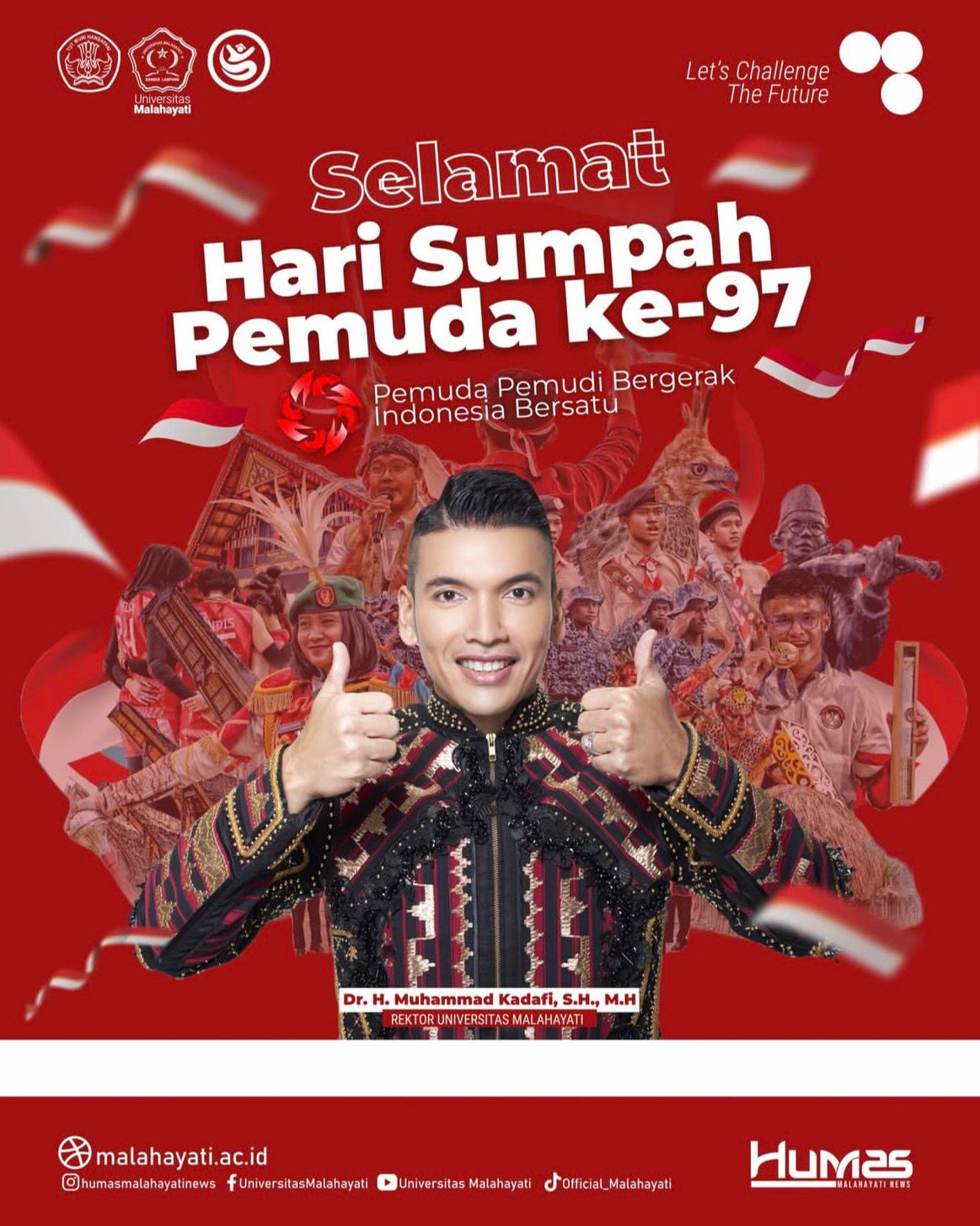 BANDARLAMPUNG (malahayati.ac.id): Selamat Hari Sumpah Pemuda 2025! Momentum bersejarah ini menjadi pengingat bagi seluruh pemuda dan pemudi Indonesia untuk terus bersatu, bergerak, dan beraksi demi kemajuan bangsa.