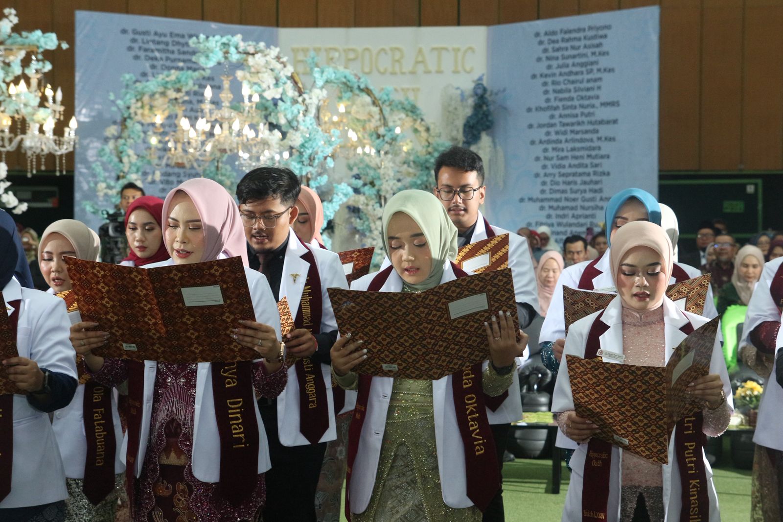 “Integritas dan religiusitas adalah dua hal yang tidak bisa dipisahkan dari profesi dokter. Ilmu yang kalian miliki harus selalu disertai dengan keikhlasan dalam melayani. Jadilah dokter yang tidak hanya cerdas secara intelektual, tetapi juga berkarakter dan berakhlak mulia,” tutur Prof. Dessy.