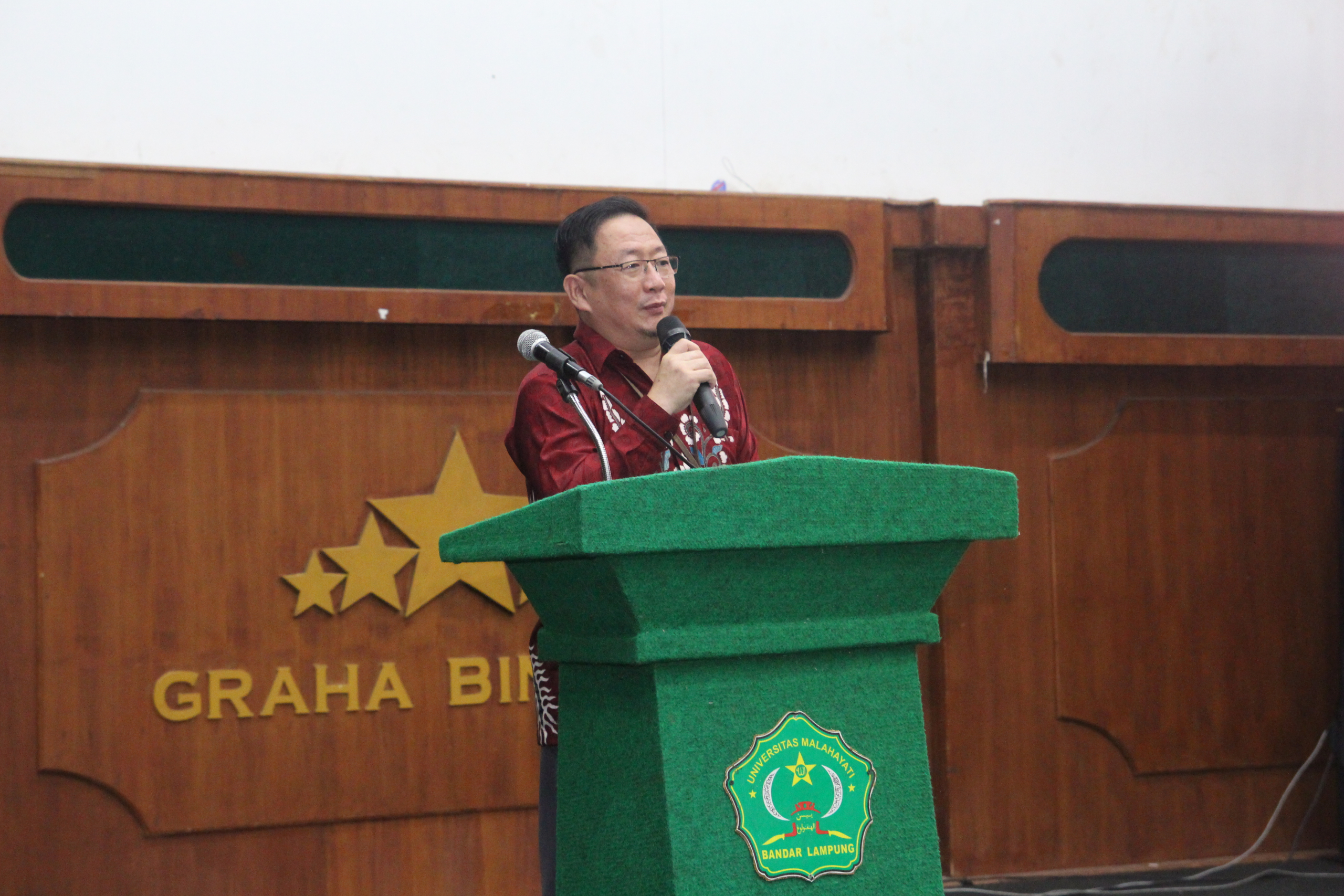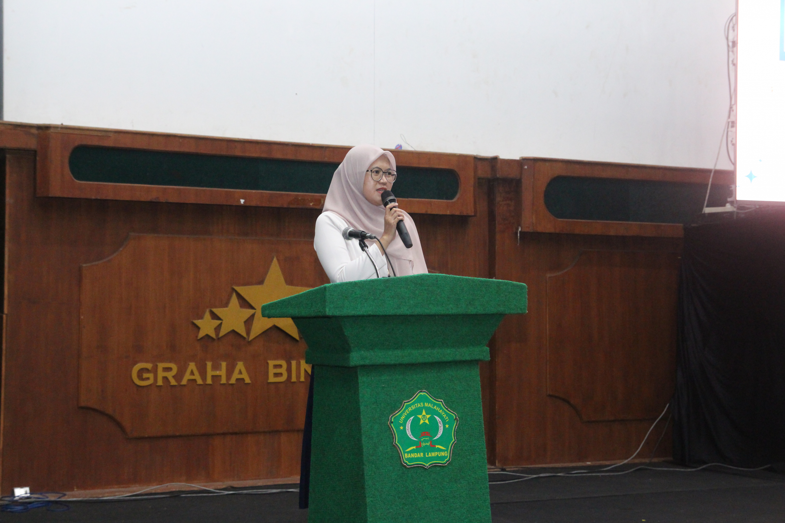 Rektor Universitas Malahayati, Dr. H. Muhammad Kadafi, S.H., M.H, tidak dapat hadir dan diwakili oleh Wakil Rektor I, Prof. Dessy Hermawan, S.Kep., Ns., M.Kes. Dalam sambutannya, Prof. Dessy memberikan apresiasi kepada Prodi Manajemen atas terselenggaranya kuliah umum ini serta menekankan pentingnya pemahaman OBE dalam proses pembelajaran.
