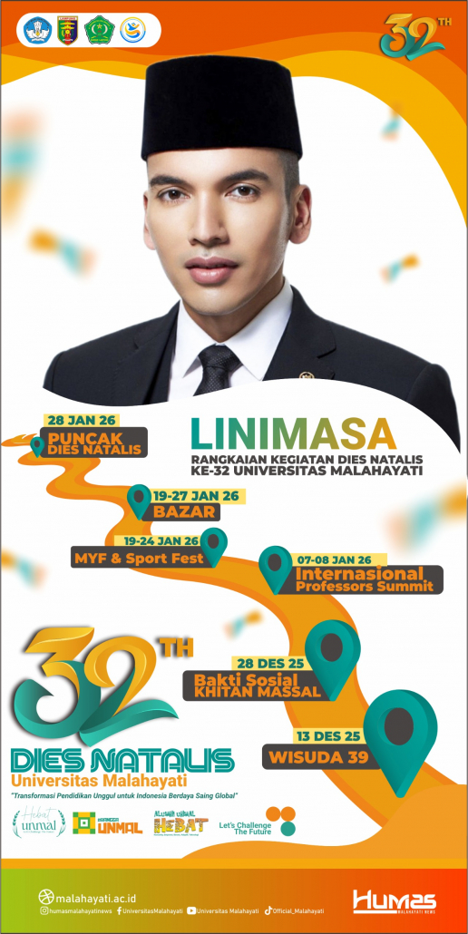 “Rangkaian kegiatan Dies Natalis ke-32 ini tidak hanya menjadi perayaan hari jadi Universitas Malahayati, tetapi juga momentum untuk memperkuat kontribusi akademik, sosial, dan internasional kampus. Setiap kegiatan dirancang agar memiliki nilai kebermanfaatan dan sejalan dengan visi Universitas Malahayati dalam menghadirkan pendidikan yang unggul dan berdaya saing global,” ujarnya.