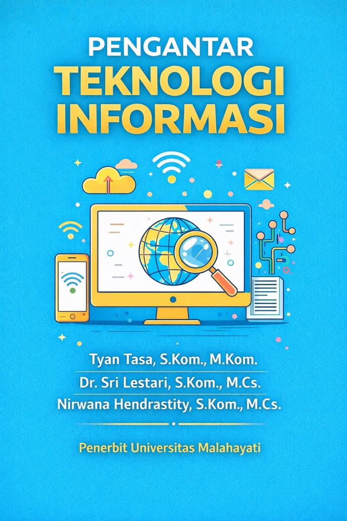 Buku ini membahas konsep-konsep fundamental Teknologi Informasi, mulai dari pengertian dan komponen TI, perangkat keras dan perangkat lunak, data dan sistem informasi, jaringan komputer, keamanan informasi, hingga etika dan perkembangan teknologi terkini. Materi disajikan dengan bahasa yang sederhana, runtut, dan dilengkapi dengan contoh penerapan agar mudah dipahami oleh pembaca pemula.