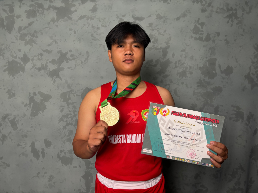 Bandar Lampung (malahayati.ac.id) : Mahasiswa Program Studi Kesehatan Masyarakat Universitas Malahayati, Adika Hedi Pratama (NPM: 23410294), berhasil mengharumkan nama kampus dengan meraih Juara 1 Kickboxing Kelas 71 Kg Putra pada ajang Pekan Olahraga Kabupaten (PORKAB) Tanggamus 2025 yang diselenggarakan oleh KONI Kabupaten Tanggamus.