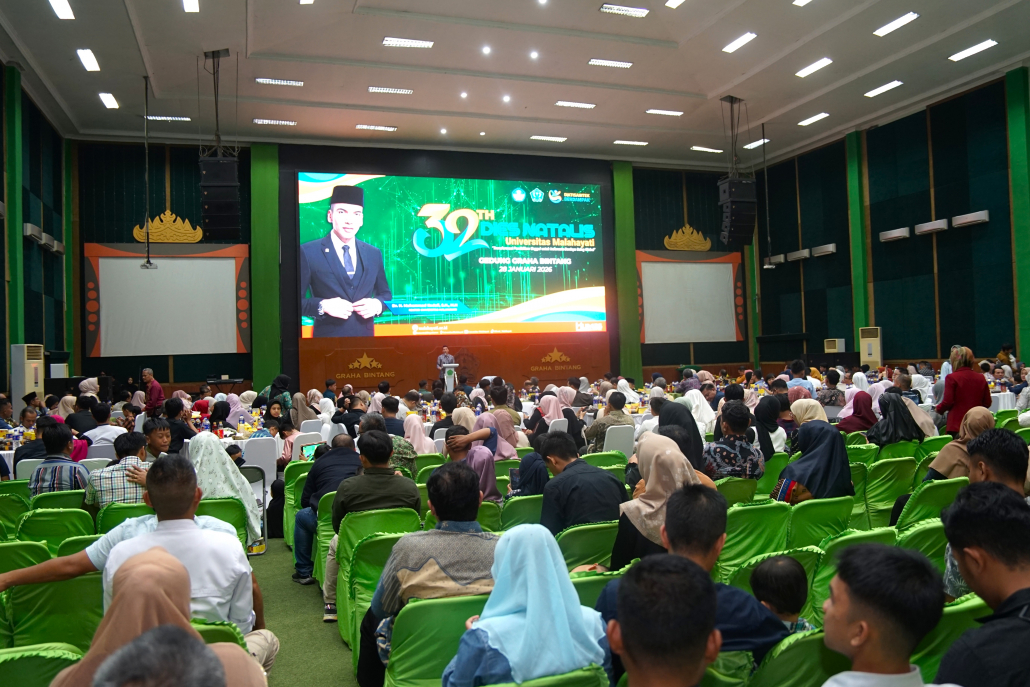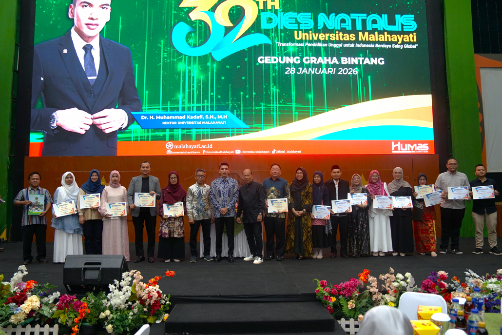 Bandar Lampung (malahayati.ac.id) : Universitas Malahayati sukses menggelar Gala Dinner Dies Natalis ke-32 pada Rabu malam (28/1/2026) yang bertempat di Gedung Graha Bintang Universitas Malahayati. Kegiatan yang dimulai pukul 19.00 WIB ini berlangsung meriah, penuh kehangatan, dan menjadi salah satu rangkaian puncak peringatan Dies Natalis Universitas Malahayati ke-32.
