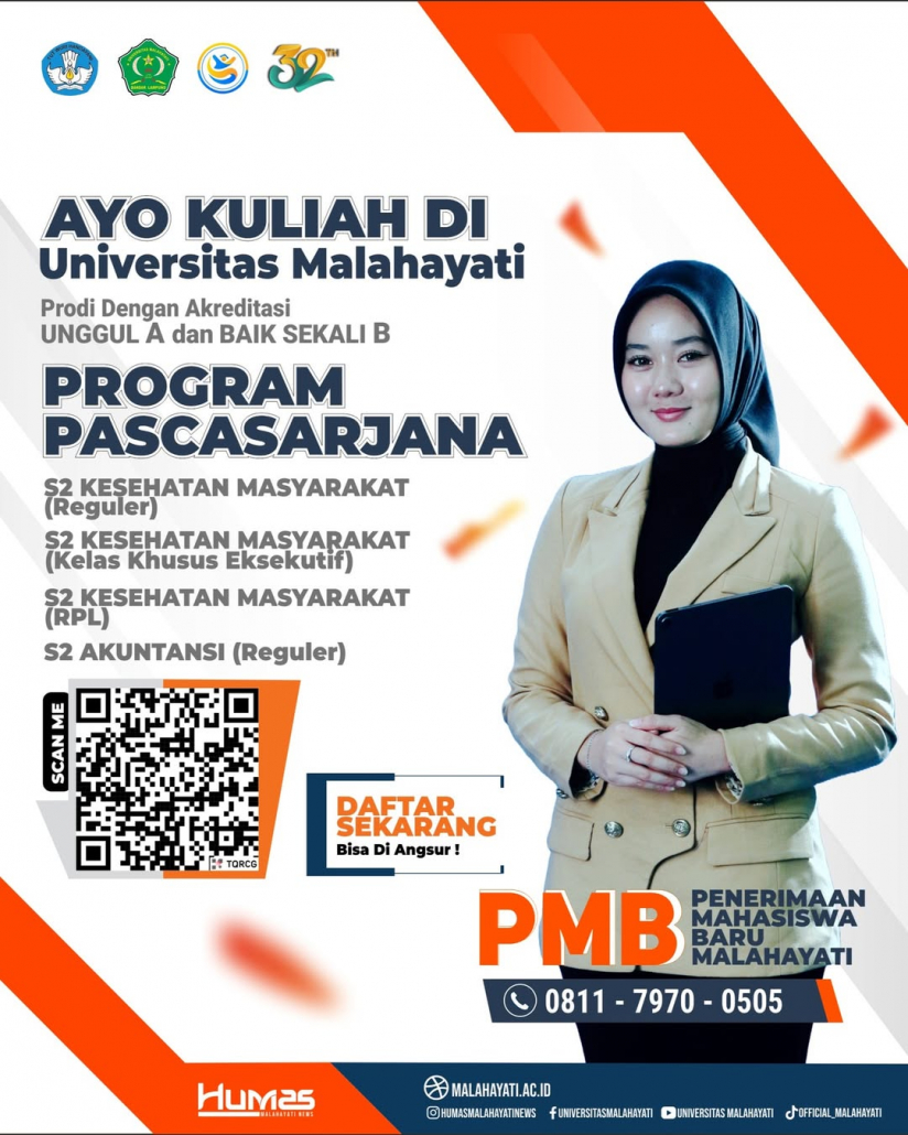 Informasi Pendaftaran Masyarakat yang ingin mendaftar dapat memproses aplikasi secara mandiri dengan memindai QR Code yang tersedia di brosur resmi atau menghubungi pusat informasi di nomor 0811-7970-0505. Informasi lebih lanjut juga dapat diakses melalui situs resmi malahayati.ac.id atau mengunjungi langsung Gedung Rektorat di Jalan Pramuka No. 27, Kemiling, Bandar Lampung.