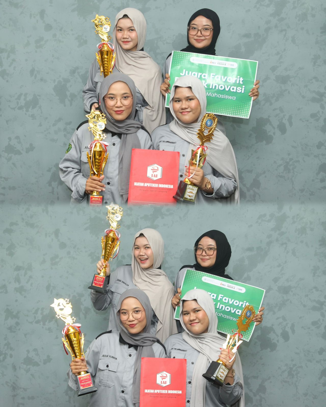 Tak berhenti di situ, tim ini juga berhasil meraih Juara Favorit Produk Inovasi Tingkat Nasional dalam ajang Health Research and Innovation Expo 2025 yang diselenggarakan oleh FK-KMK Universitas Gadjah Mada pada 17 Oktober 2025, serta Juara 3 Produk Inovasi Tingkat Nasional dalam Gebyar Farmasi 2025 di Poltekkes Kemenkes Tanjung Karang pada 18 Oktober 2025. Prestasi beruntun ini menjadi bukti nyata semangat dan konsistensi mereka dalam mengembangkan ide-ide inovatif di bidang farmasi.